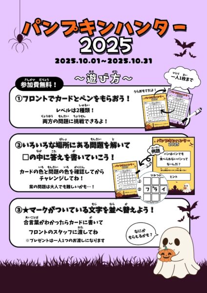 🎃施設内各所にある問題(なぞなぞ)を解き問題と同じ色のカードに答えを記入しよう🔍